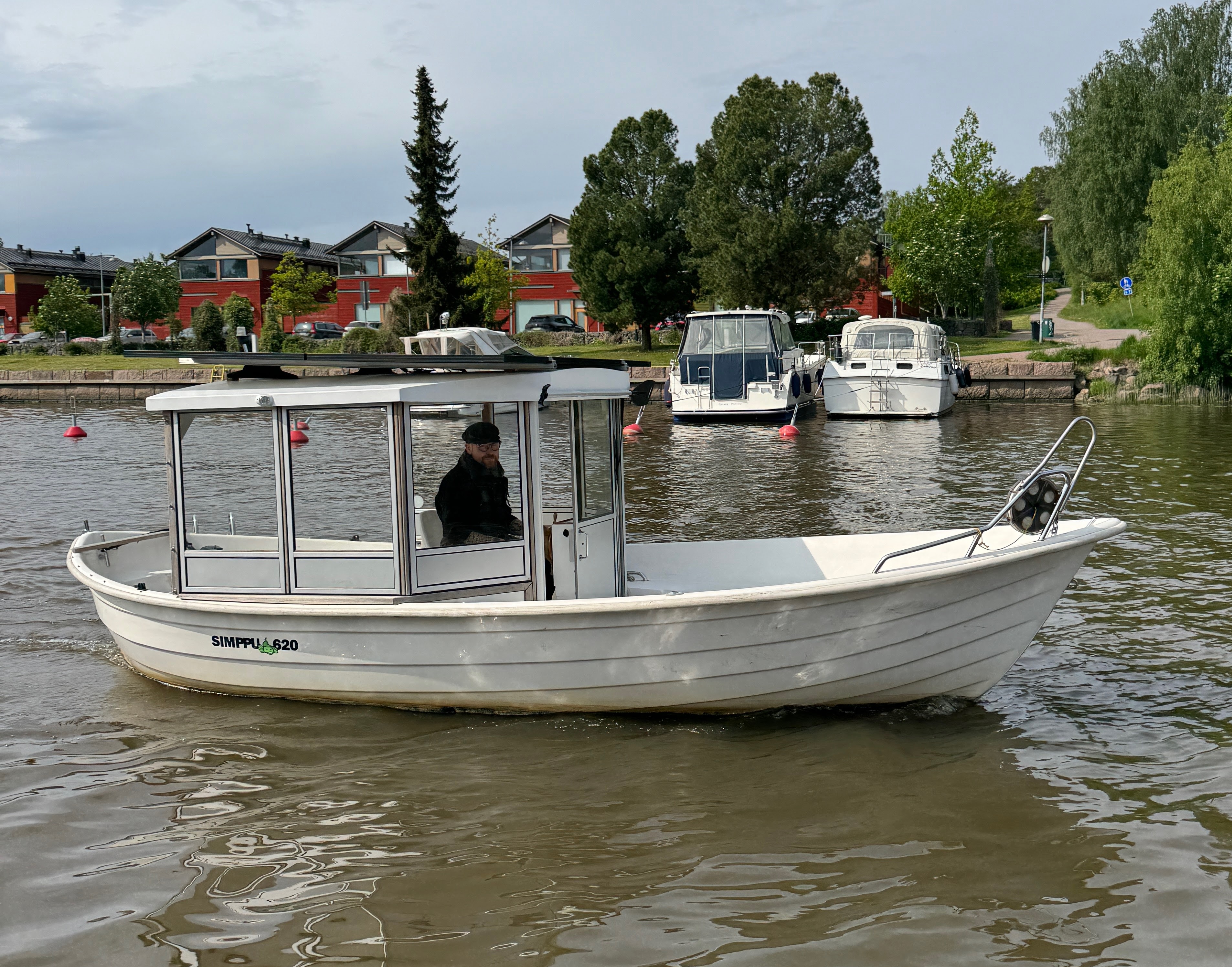 Simppu on hassun näköinen, mutta hyvin toimiva sähkövene jokikruisailuun tai pidempäänkin seikkailuun.